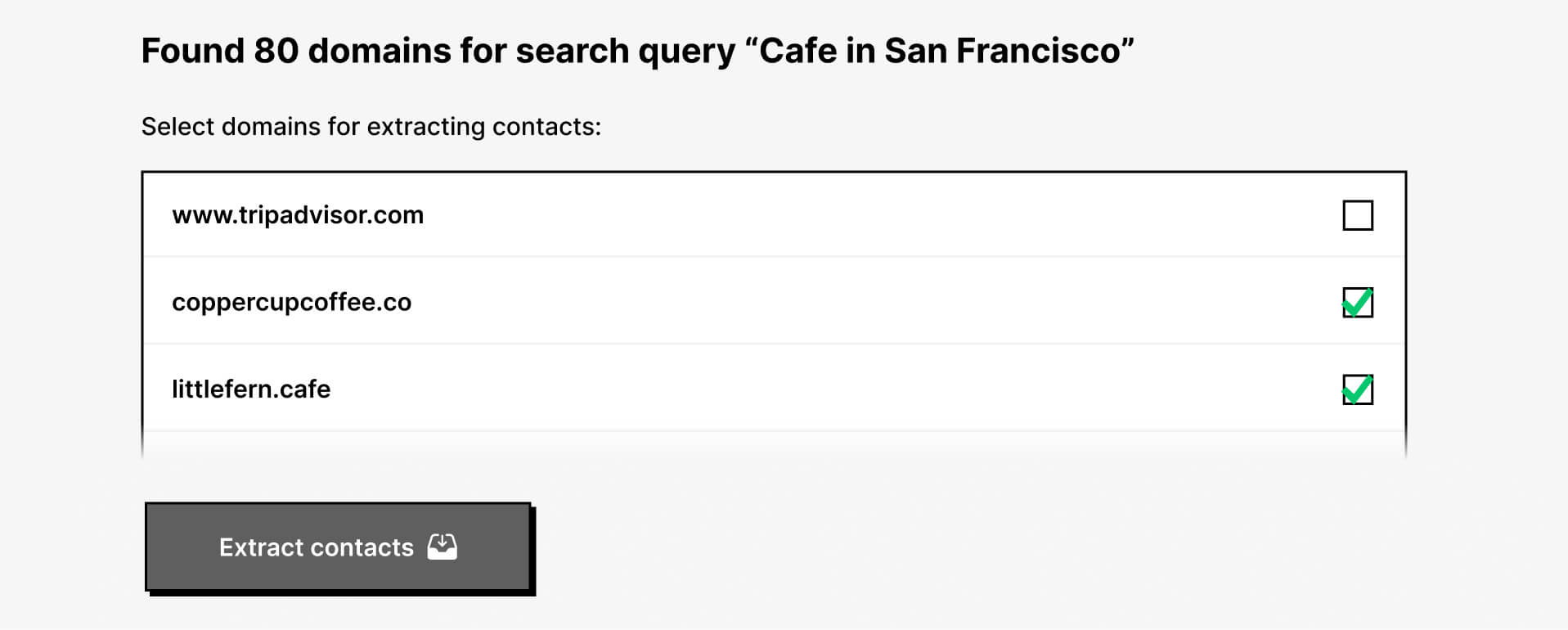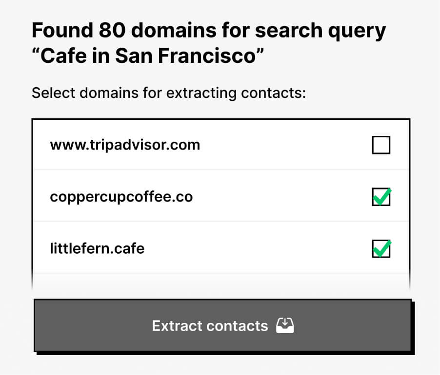 Approve only the domains you want to process. Nothing gets extracted until you confirm the selection.